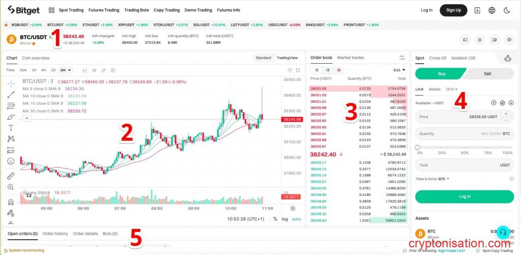 Торговый терминал Bitget предоставляет множество инструментов и функций, обеспечивая комфортное и эффективное взаимодействие с рынком криптовалют.
