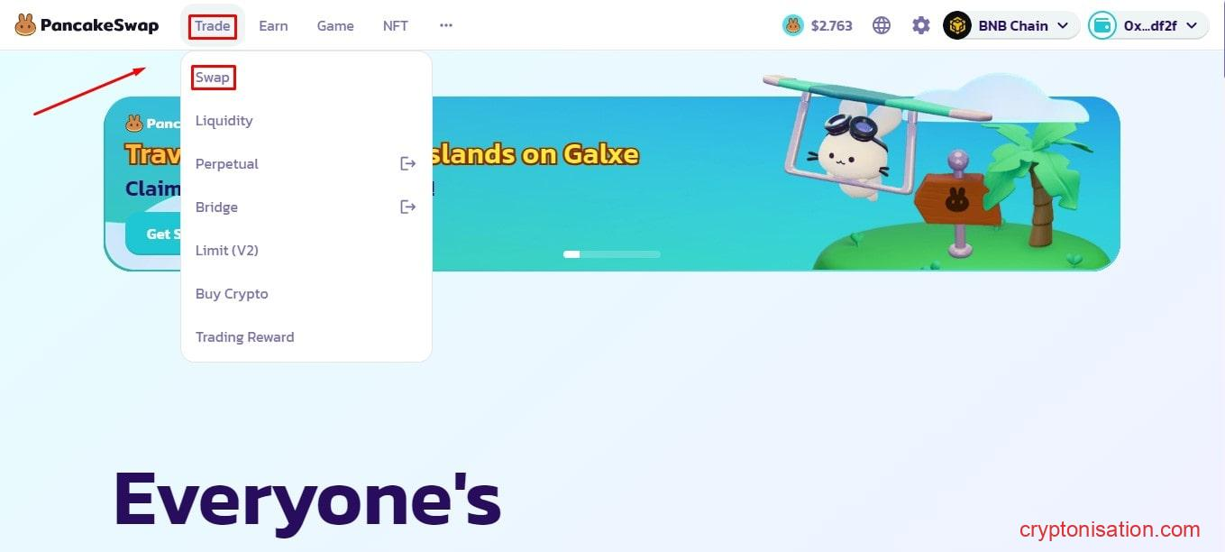 Подключение криптокошелька - В разделе Trade перейдите в Swap;