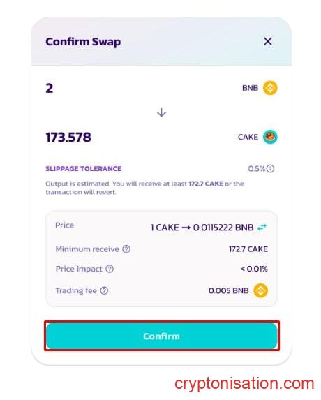 Торговые комиссии биржи PancakeSwap V2 составляют 0.25%. Из этой суммы 0.17% идет на вознаграждение поставщикам ликвидности, 0.0225% — в казначейство PancakeSwap и 0.0575% — на сжигание. Для пулов ликвидности PancakeSwap V3 есть возможность выбирать размер комиссии: 0.01%, 0.05%, 0.25% и 1%. Кроме этого, при транзакциях с криптокошелька взимается сетевая комиссия (GAS), размер которой зависит от загруженности сети в текущий момент.