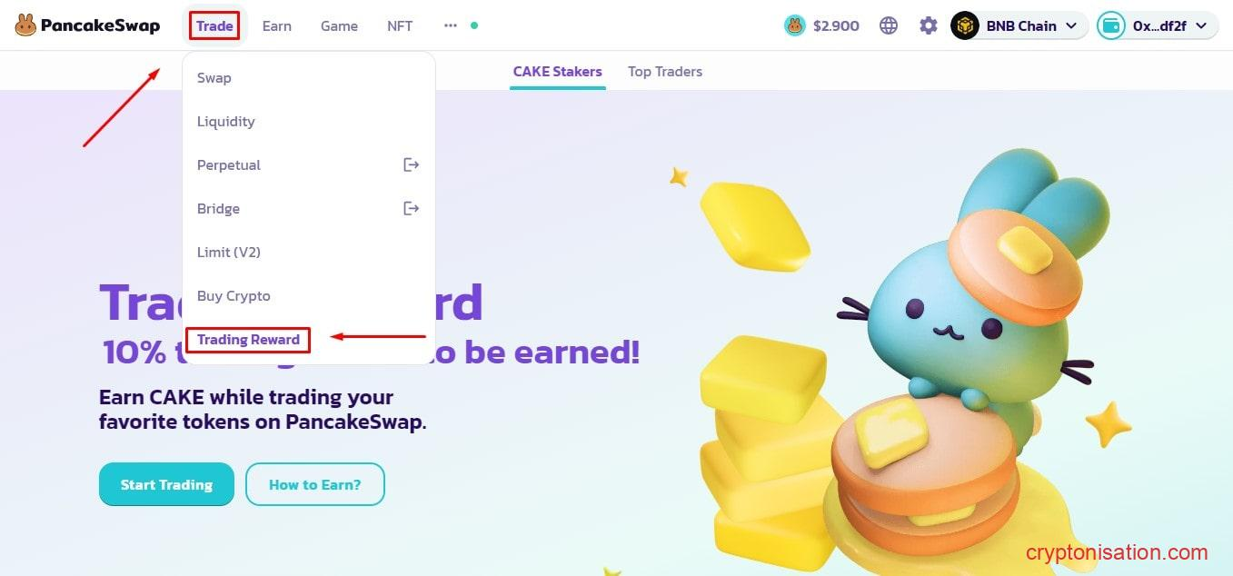 Этот тип заработка предусматривает получение вознаграждения в биржевом токене CAKE за участие в торговых соревнованиях. Трейдеры получают монеты за счет активных торгов на бирже. Кроме этого, торговое вознаграждение предусматривает скидку на комиссии.