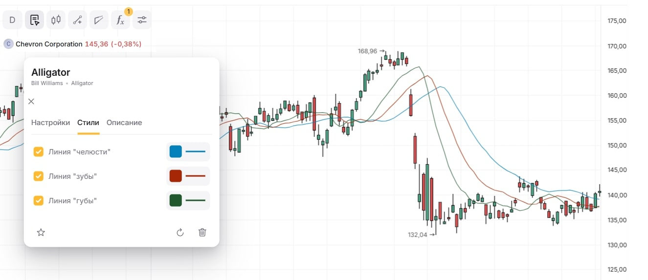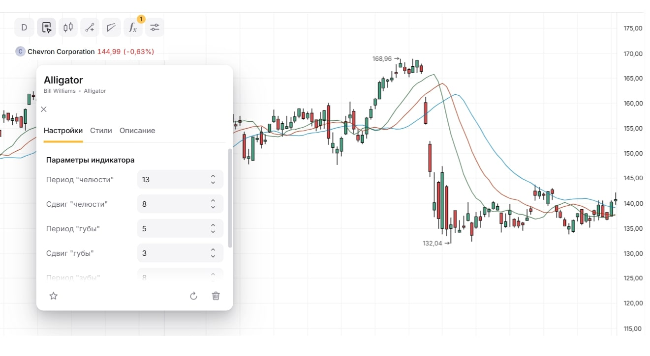 В настоящее время множество брокеров предоставляют удобные торговые платформы и веб-интерфейсы для анализа графиков. Аллигатор является одним из базовых инструментов, который легко настраивается в несколько кликов и отображается в виде линий на ценовом графике.