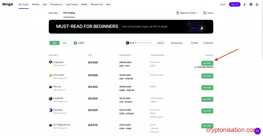 Выбор контрагента - Нажмите Buy и следуйте дальнейшим указаниям платформы.