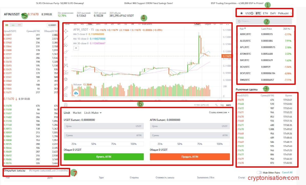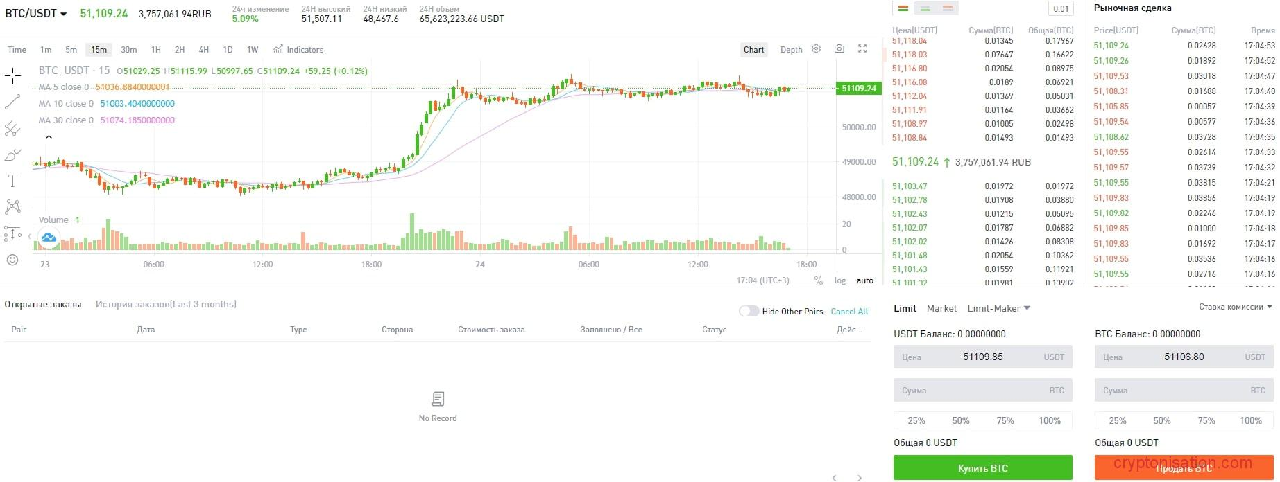 Для спотовой торговли BitMart предлагает 2 интерфейса: