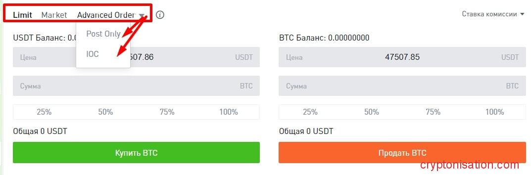 - Post Only гарантирует, что любой лимитный ордер, размещенный на рынке, не будет исполнен как маркет, если это произойдет, он будет автоматически отменен;