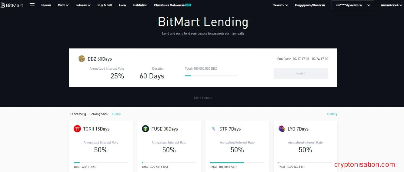 Криптобиржа предлагает клиентам инвестиционный сервис — BitMart Lending.