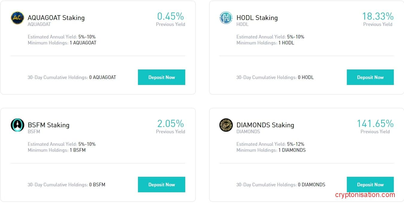 BitMart Staking был запущен в феврале 2020 года для криптовалют DASH, QTUM, EUM, BHD, ALGO. Сейчас этот список существенно шире.