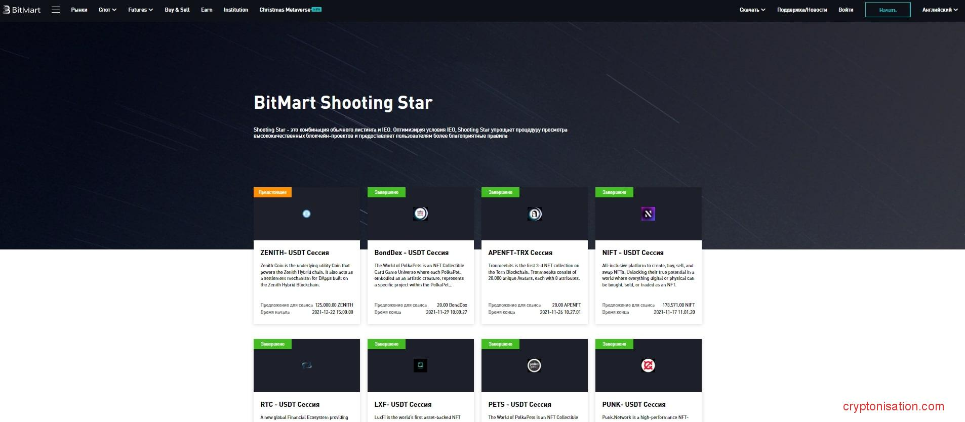 BitMart продвигает программу “падающих звезд” для новых проектов. Shooting Star — это комбинация листинга и IEO.