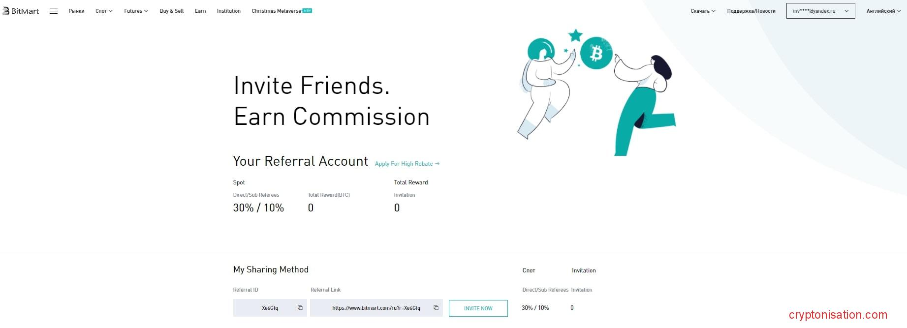 Помимо получения дохода от торговли, стекинга и лендинга, Bitmart предлагает заработок на реферальной программе. ✅