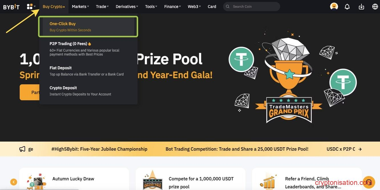 - В личном кабинете выберите Buy Crypto → One-Click Buy;