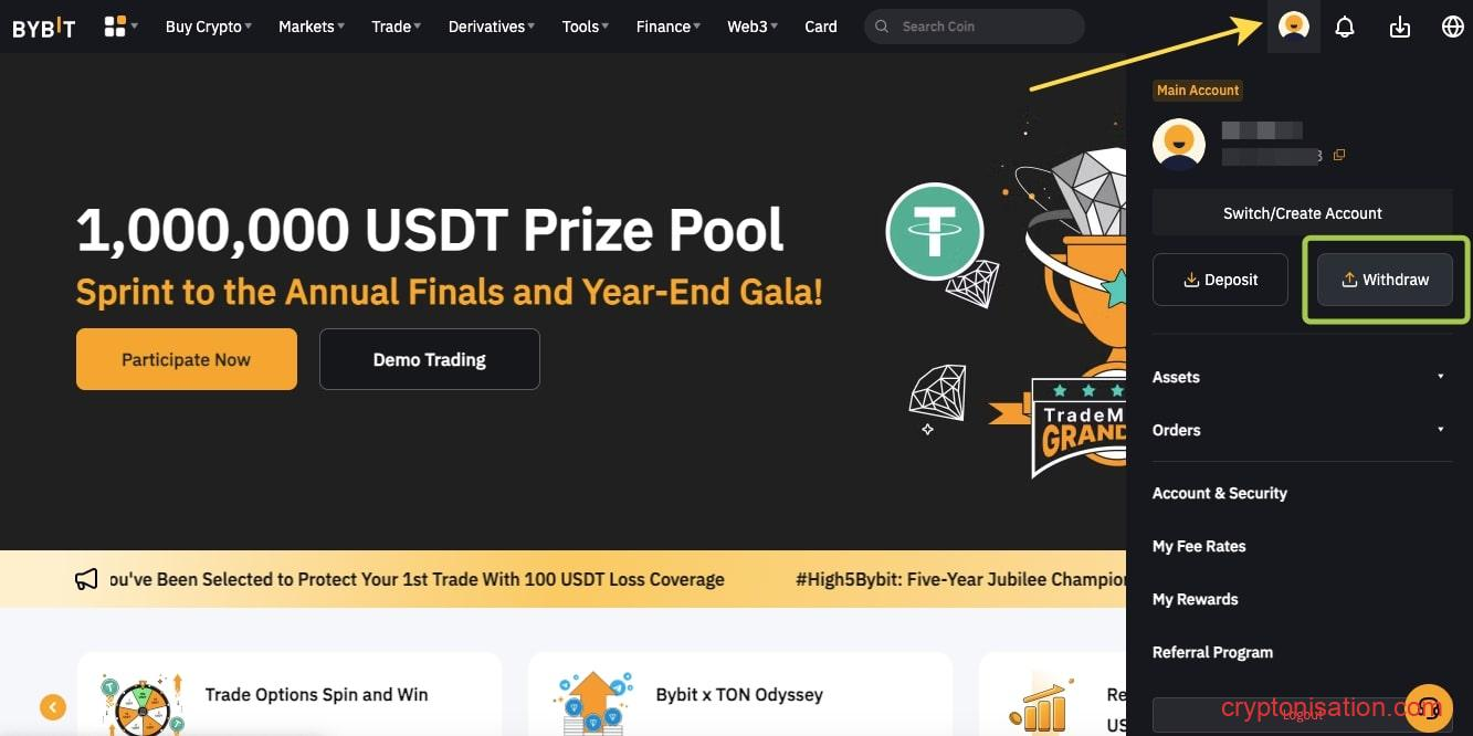 - В личном кабинете кликните по иконке профиля и выберите опцию Withdraw;