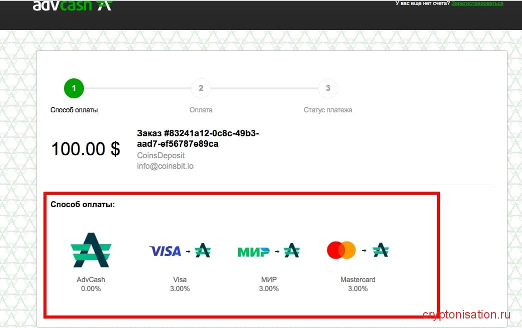 Далее на странице AdvCash выбираем способ оплаты, учитывая комиссию для каждого из них: