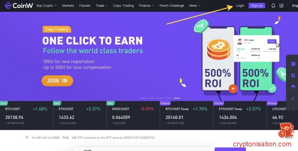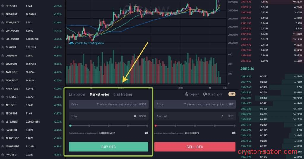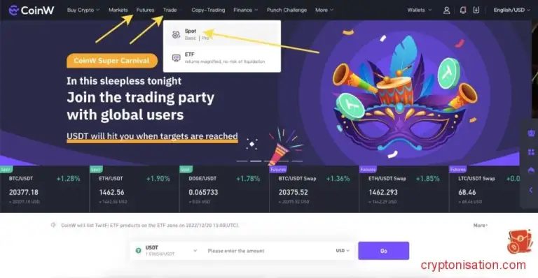 Для покупки биткоинов на спотовом рынке CoinW: