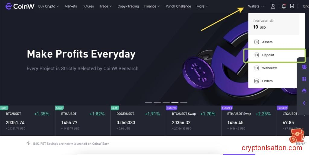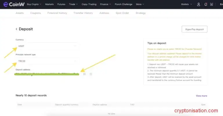 Как пополнить счет CoinW