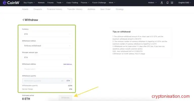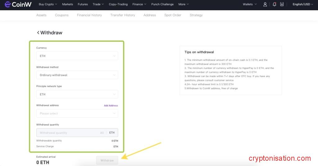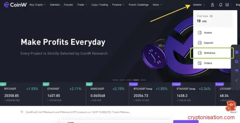 Как продать криптовалюту на CoinW