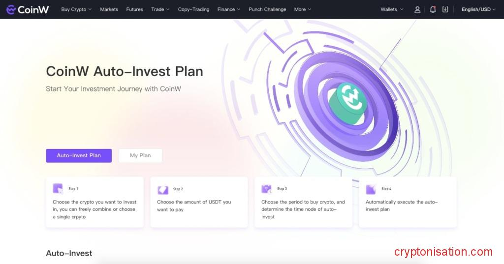 Для автоинвестирования на CoinW доступны десятки цифровых валют, среди которых монеты из ТОПа, а также молодые и перспективные проекты.