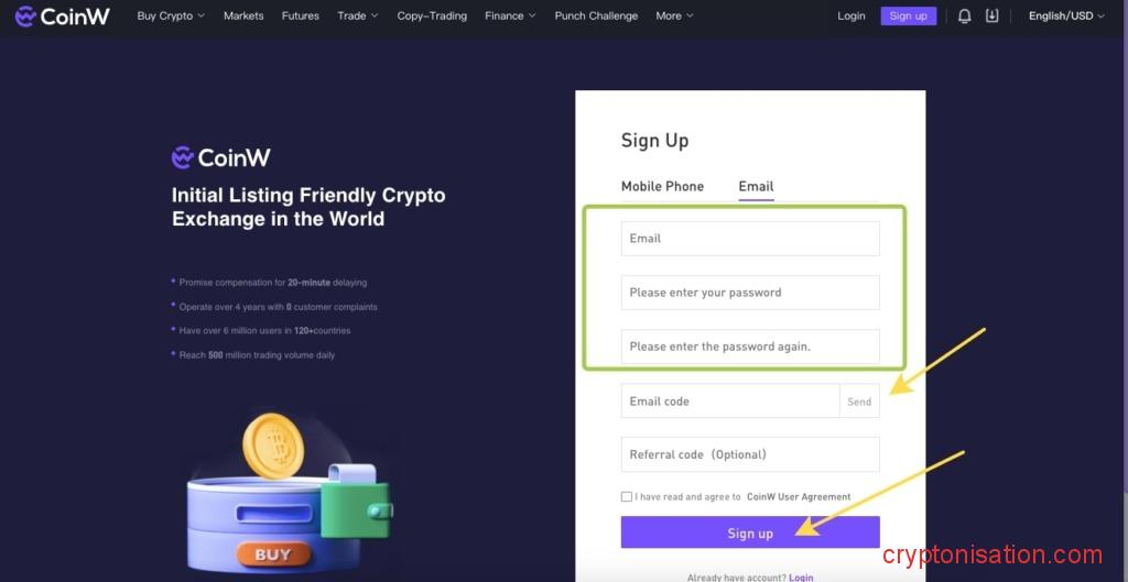 Как зарегистрироваться на CoinW