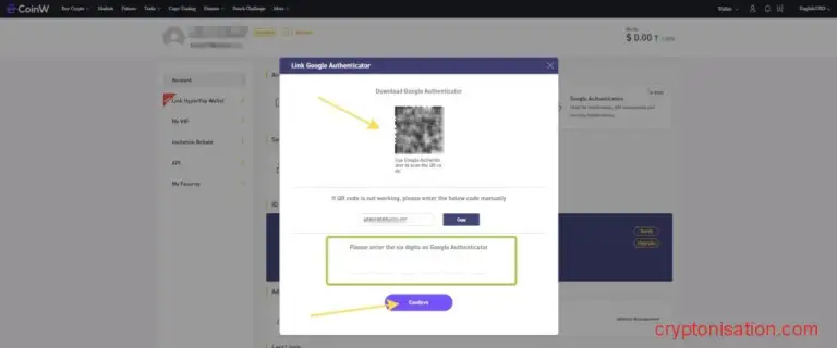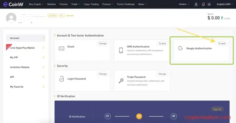 Чтобы подключить двухфакторную аутентификацию к вашему CoinW аккаунту:
