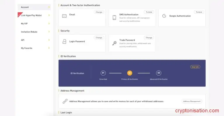 В личном кабинете пользователя доступны различные настройки безопасности для защиты аккаунта: 2FA, SMS-аутентификация, торговый пароль и другие.