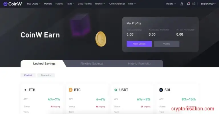 CoinW Earn – это получение вознаграждения за удержание монет на счете.