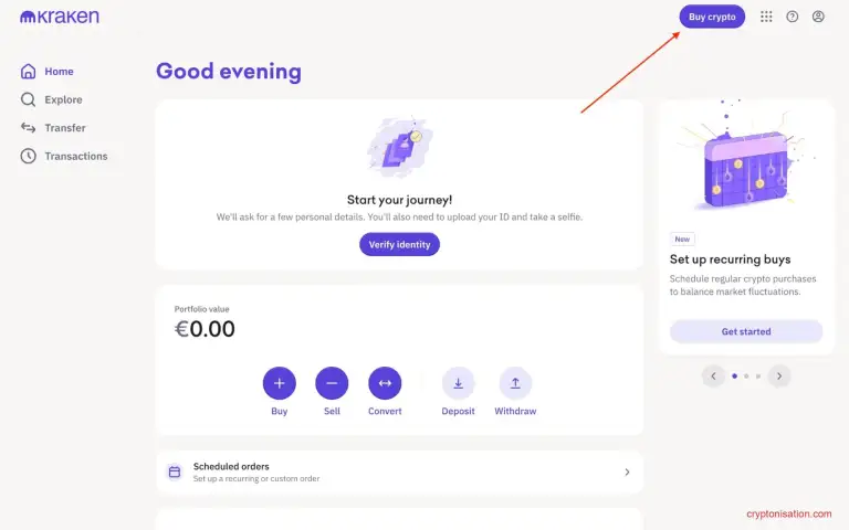 Учетная запись - Нажмите Buy crypto в правом верхнем углу;