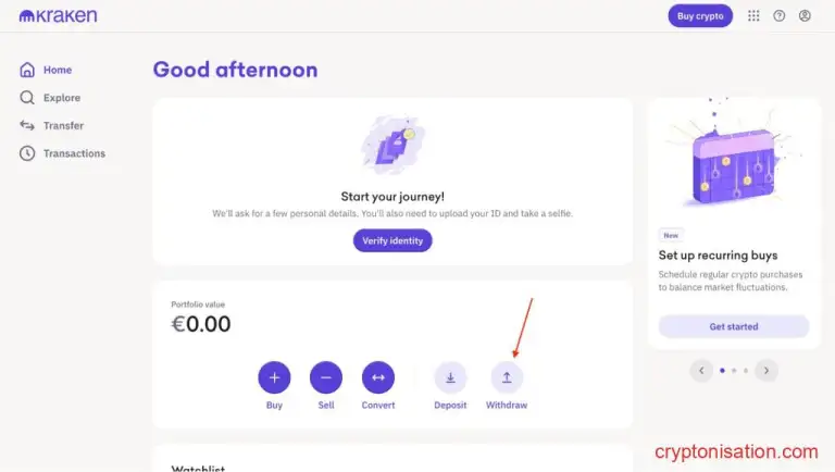 Чтобы вывести средства с криптобиржи Kraken, зайдите в свою учетную запись, нажмите Withdraw и следуйте дальнейшим инструкциям.