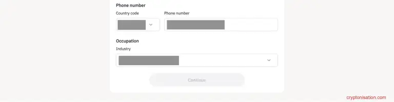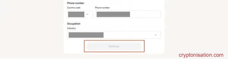 Номер телефона и профессиональная деятельность - Нажмите на кнопку Continue;