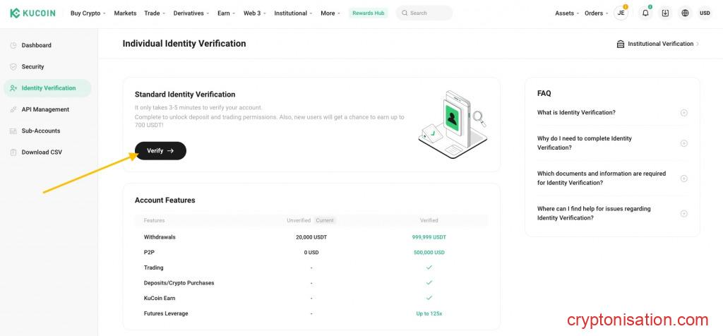 Следуйте пошаговой инструкции, чтобы пройти верификацию на Kucoin: