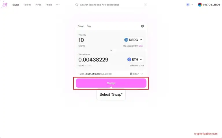 Чтобы попасть в Swap на Uniswap: