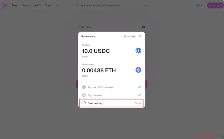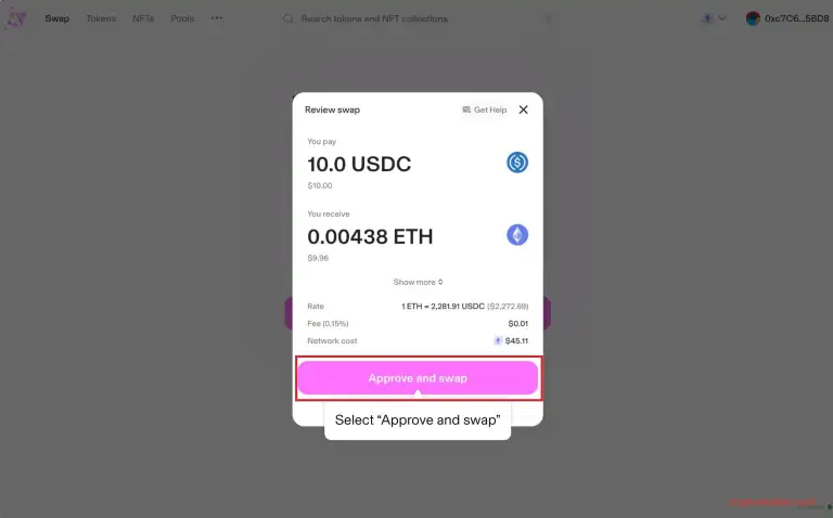 Заполненная заявка на обмен - Проверьте детали сделки и кликните Approve and Swap;
