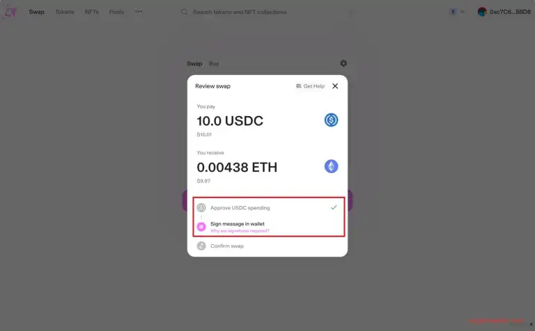 Окно подтверждения сделки - Подтвердите обмен в кошельке;