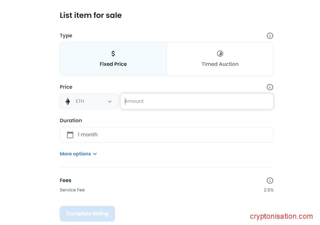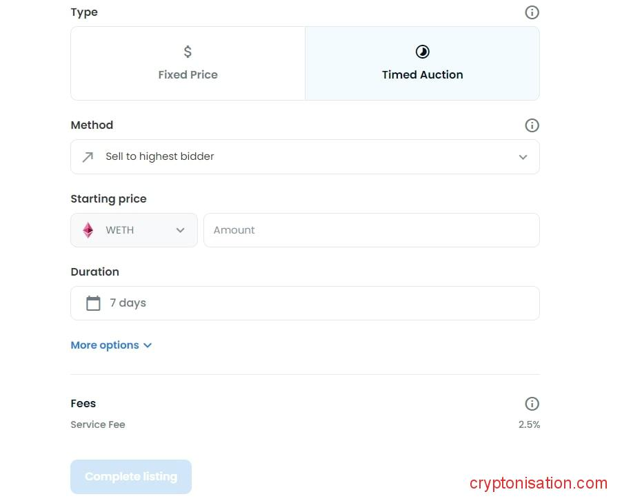 Ограниченный по времени аукцион. С ним OpenSea предлагает два варианта работы: