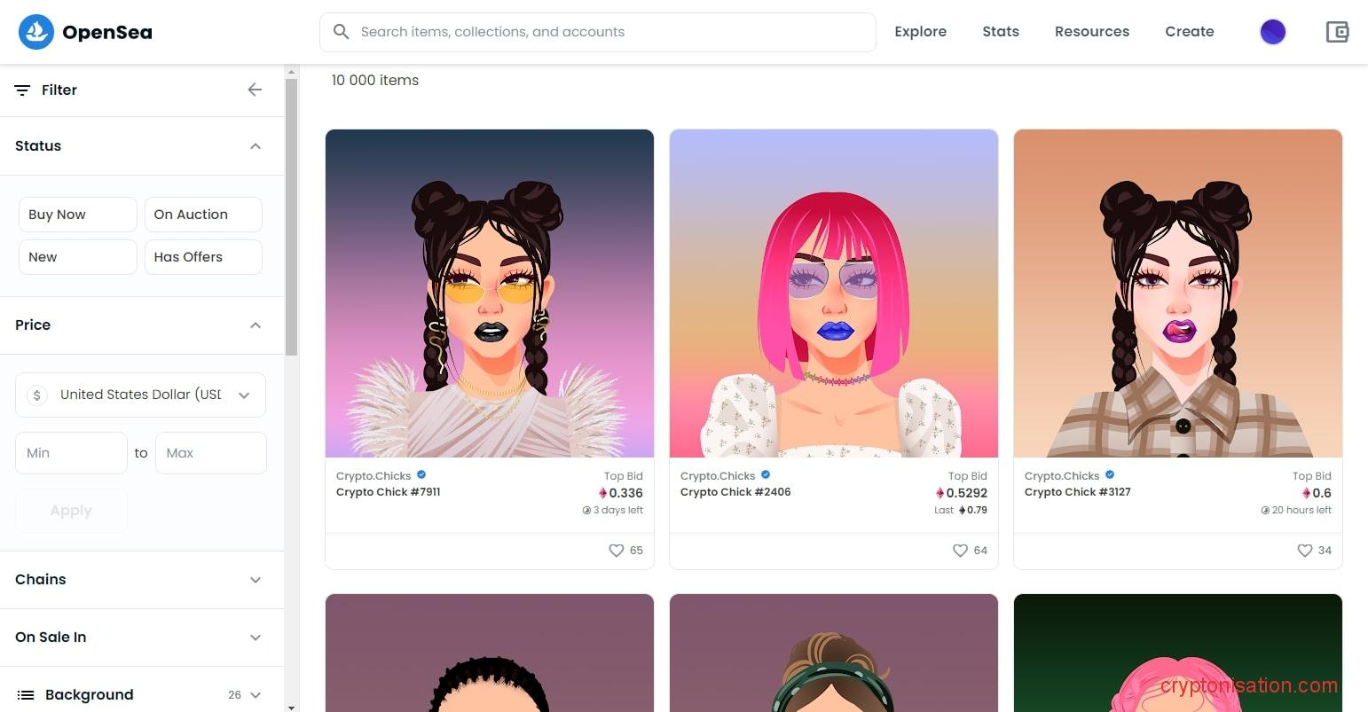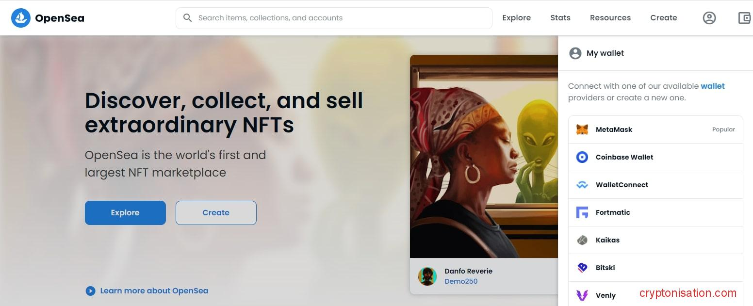 OpenSea — удобная и безопасная площадка, позволяющая торговать NFT-токенами и создавать их. Чтобы начать пользоваться сервисом, достаточно подключить цифровой кошелек.