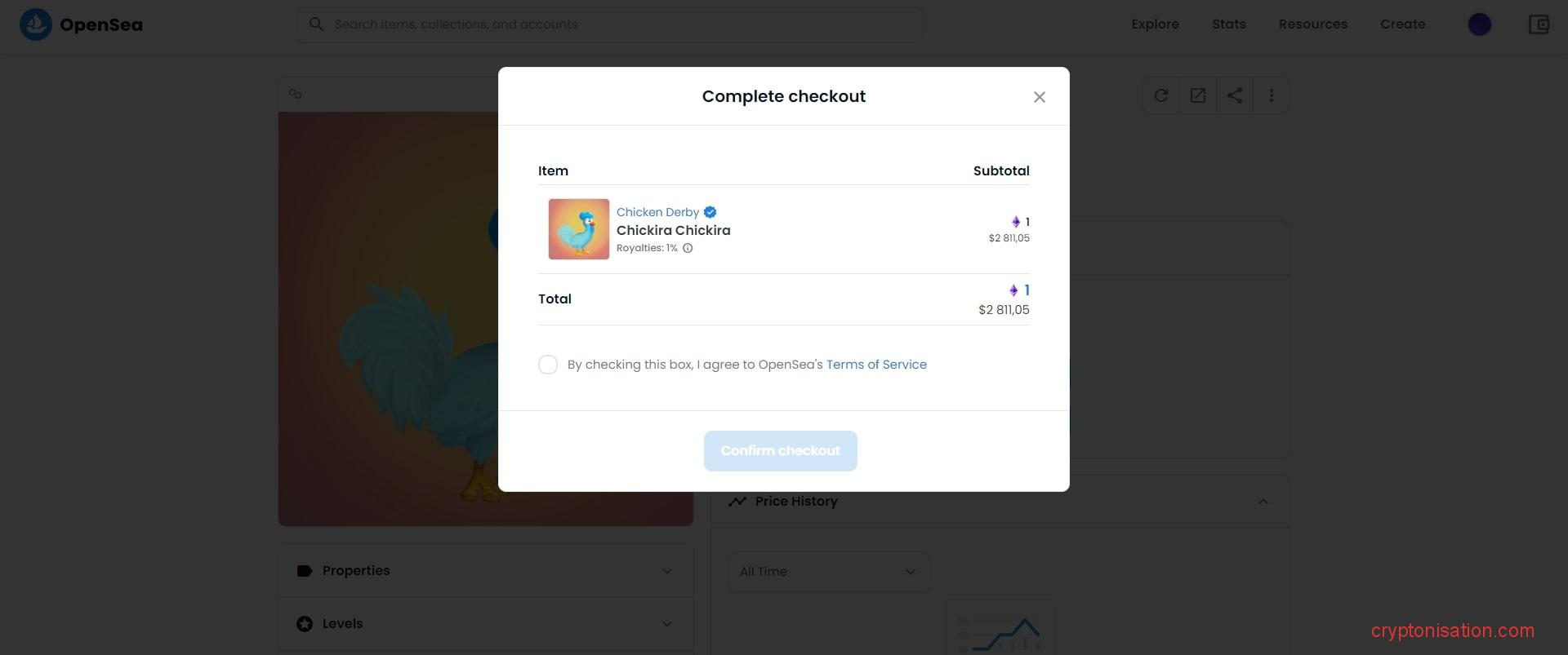 OpenSea берет 2.5% за любые транзакции внутри системы. Но необходимо помнить также о плате за транзакцию в блокчейне Ethereum.