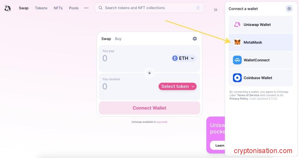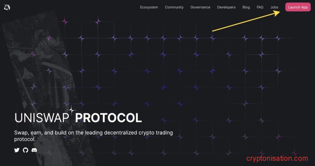 - Conéctate al exchange: dirígete al sitio web oficial de Uniswap y haz clic en Launch App;