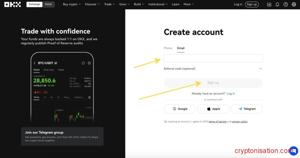Crear una cuenta en OKX