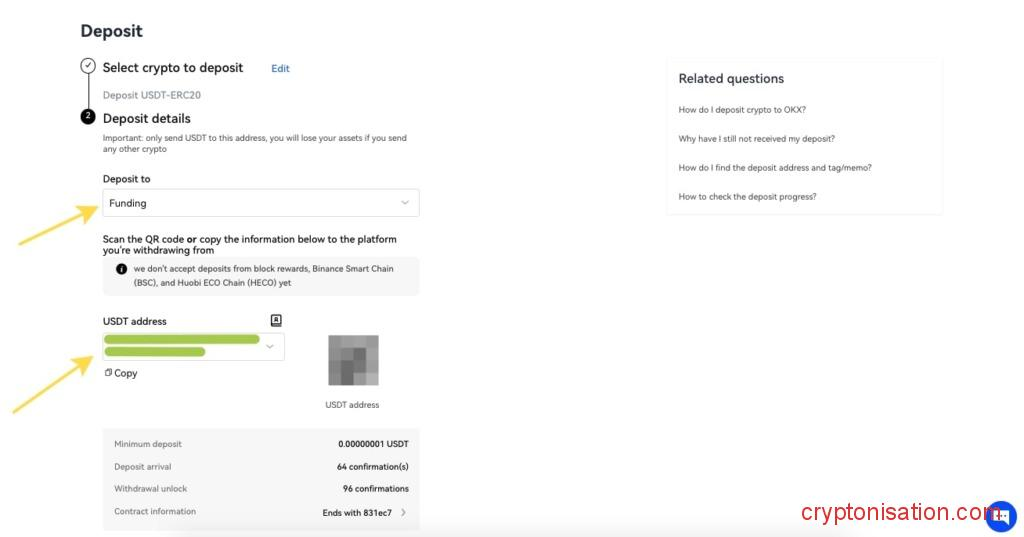 Dirección para el depósito - Completa la transacción de monedero y espera a que los fondos lleguen a tu cuenta de exchange.