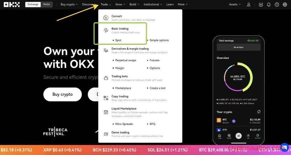 - Dirígete a la interfaz de trading: selecciona Trade → Basic Trading → Spot;