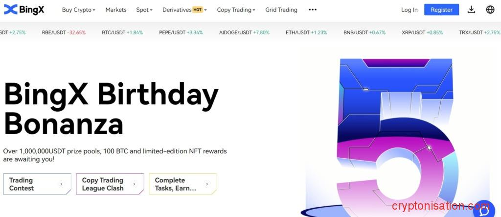 Los expertos de Cryptonisation.com han elaborado una revisión del exchange de criptomonedas BingX, en la que abordan las características de la plataforma de comercio, el proceso de registro y verificación, los mercados disponibles, sus funciones, comisiones y otras condiciones de comercio. 👇
