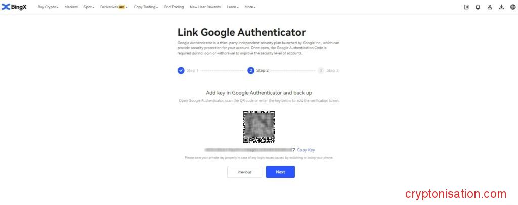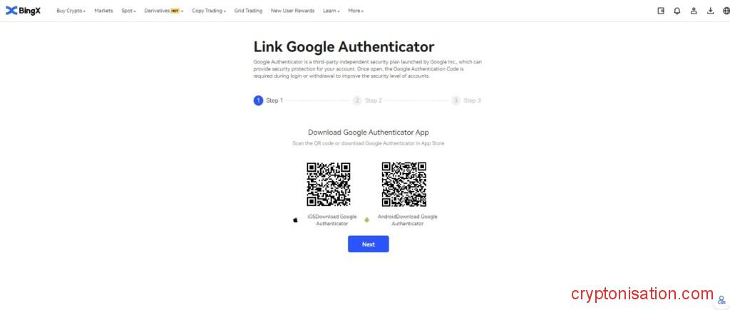 - Escanea el código QR o copia la dirección y pégala en la aplicación → pulsa Next;