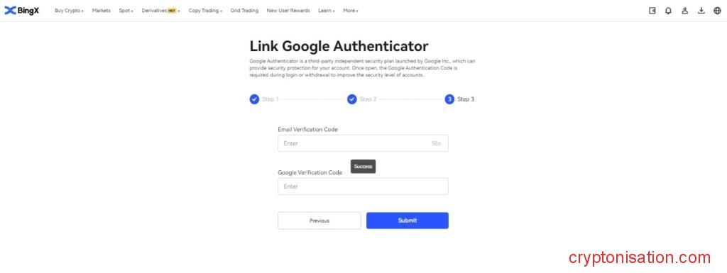 - En la ventana que se abre, introduce el Código de Verificación de correo electrónico y el Código de Verificación de Google → haz clic en Submit;