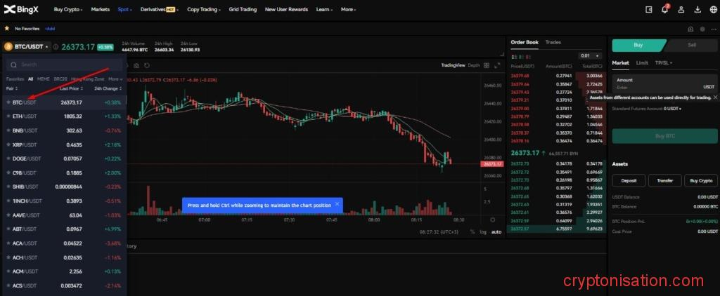 Hay 1013 pares de monedas disponibles para el comercio en el mercado al contado del exchange. Los 10 principales pares en BingX son:
