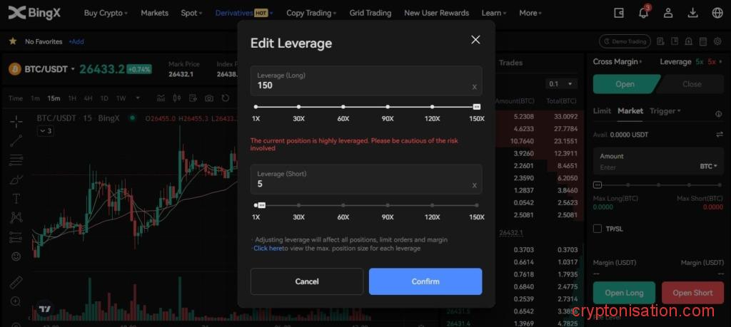 El apalancamiento máximo para operar en el mercado de futuros del exchange es de 150X.