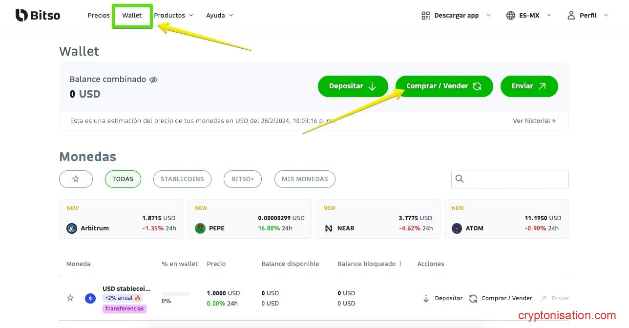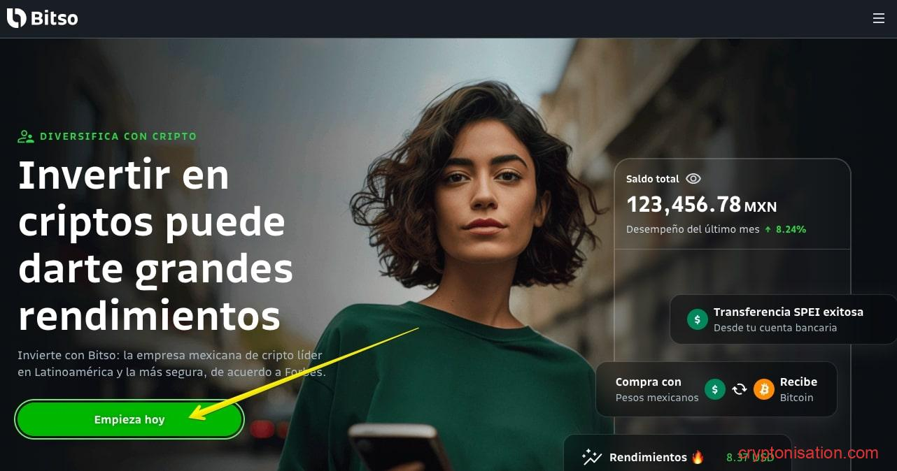 - Visita el sitio web oficial del exchange 👉 https://bitso.com/.