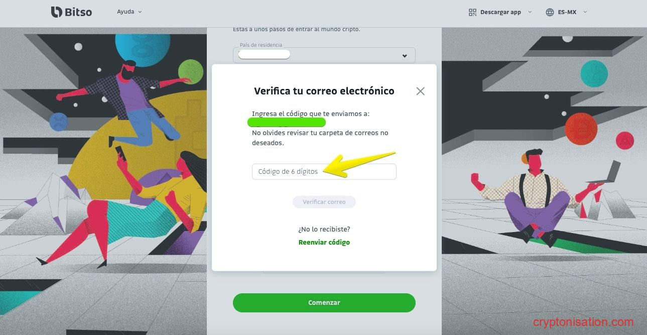 Código de confirmación - El sistema te redirigirá a la cuenta de usuario de Bitso.