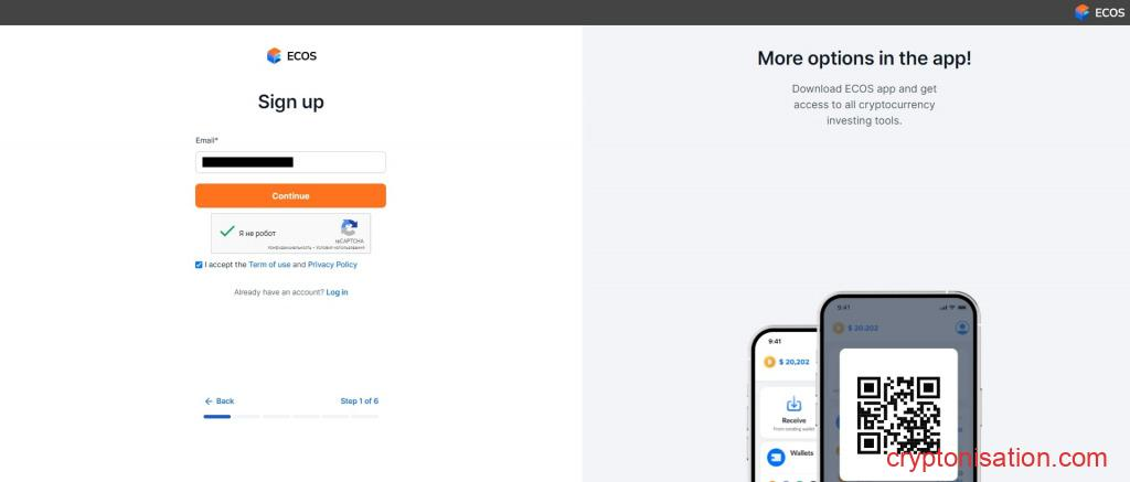 Para completar el proceso de registro en la plataforma ECOS Cloud Mining, sigue los pasos que se indican a continuación: