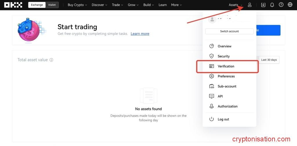Чтобы пройти верификацию на OKX, выполните следующие действия: