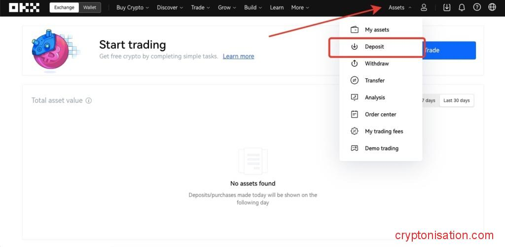 - В личном кабинете в верхнем меню выберите Assets → Deposit;