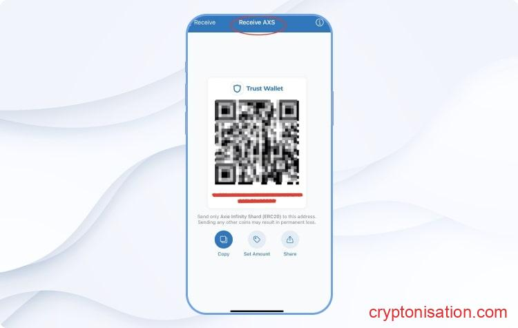 Криптовалюта Axie Infinity в Trust Wallet - Скопируйте полученный адрес или отсканируйте QR-код;
