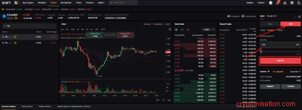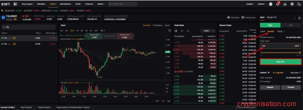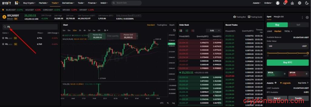 Рассмотрим, как купить FIL на спотовом рынке Bybit:
