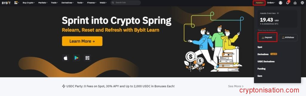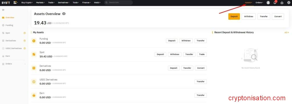 - Нажмите Assets и выберите Deposit;